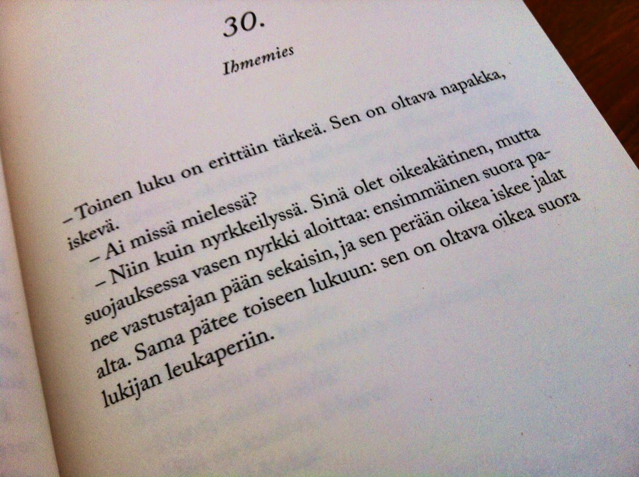Juttelemme kyllä keskenämme päivittäin, mutta normipäivän viestinvaihto ”voitsä ostaa maitoo”, ”meetsä jo nukkuun”, ”mitä mieltä sä olit tästä lehtijutusta” ei jätä aina tilaa harkitulle ja keskittyneelle keskustelulle. Siksi sille on järjestettävä omaa aikaa.
